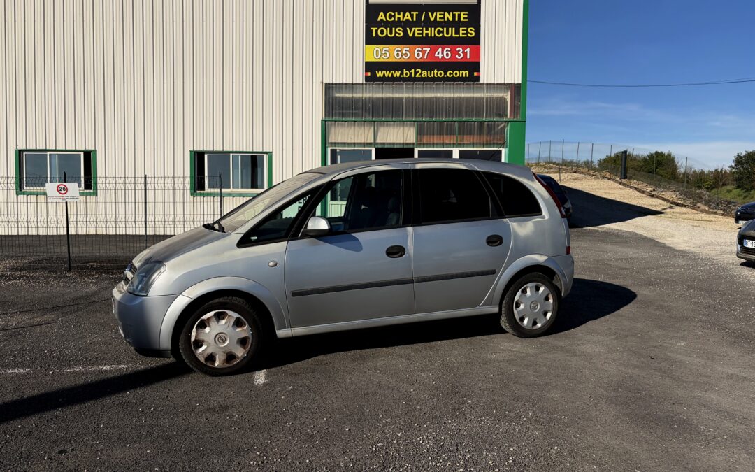 Opel Meriva A 1.6 16v 100 Enjoy, monospace, 5 portes, gris, mise en circulation en 06/2005, boite manuelle à 5 vitesses, 7 chevaux fiscaux.