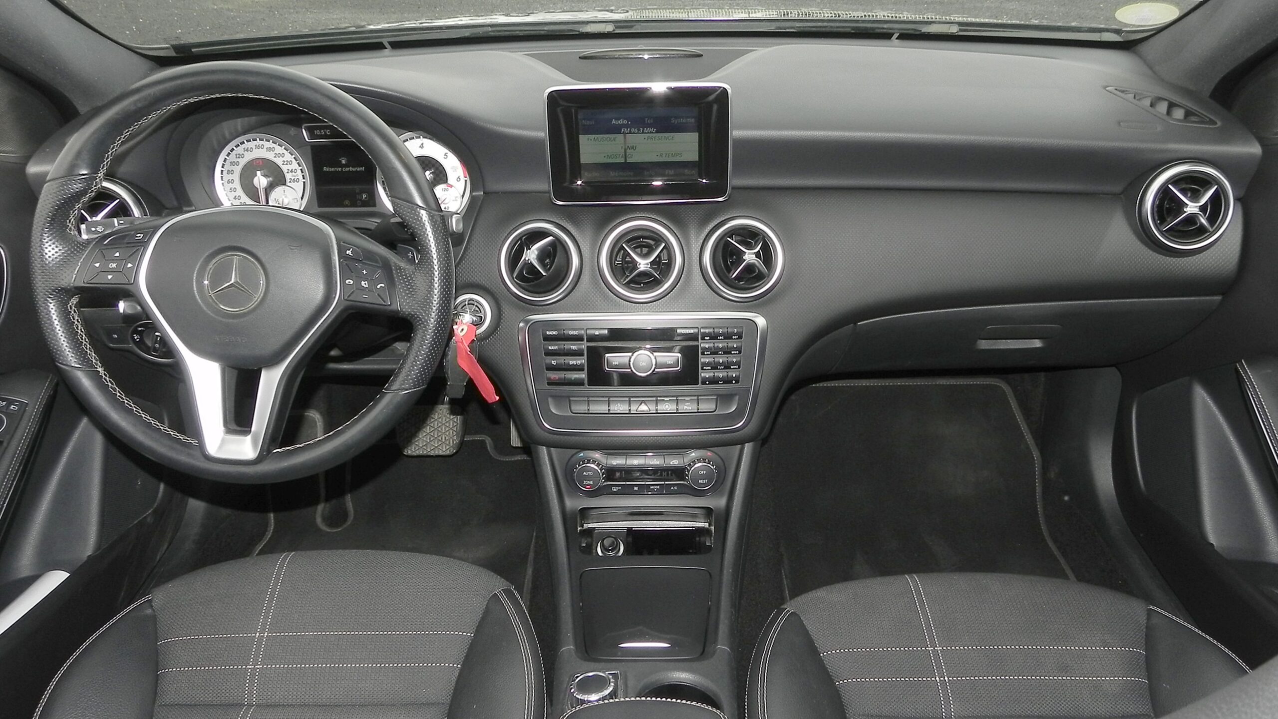 Auto-radio CD / USB à commandes au volant, ordinateur de bord, équipement Bluetooth, GPS, direction assistée, vitres avants et arrières électriques, rétroviseurs électriques rétractables, climatisation automatique bi-zone, fermeture centralisée, volant sport cuir multifonctions, accoudoir central, inserts alu, intérieur semi-cuir noir, sièges sport, palettes au volant, rétroviseur intérieur électro-chrome.